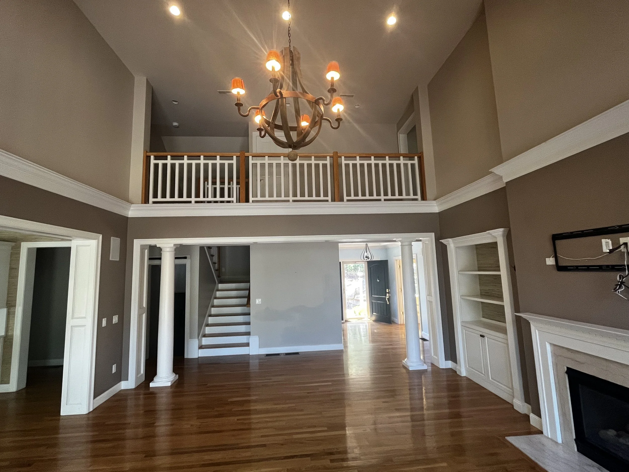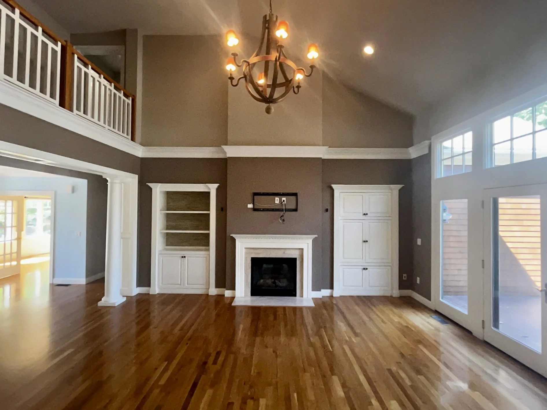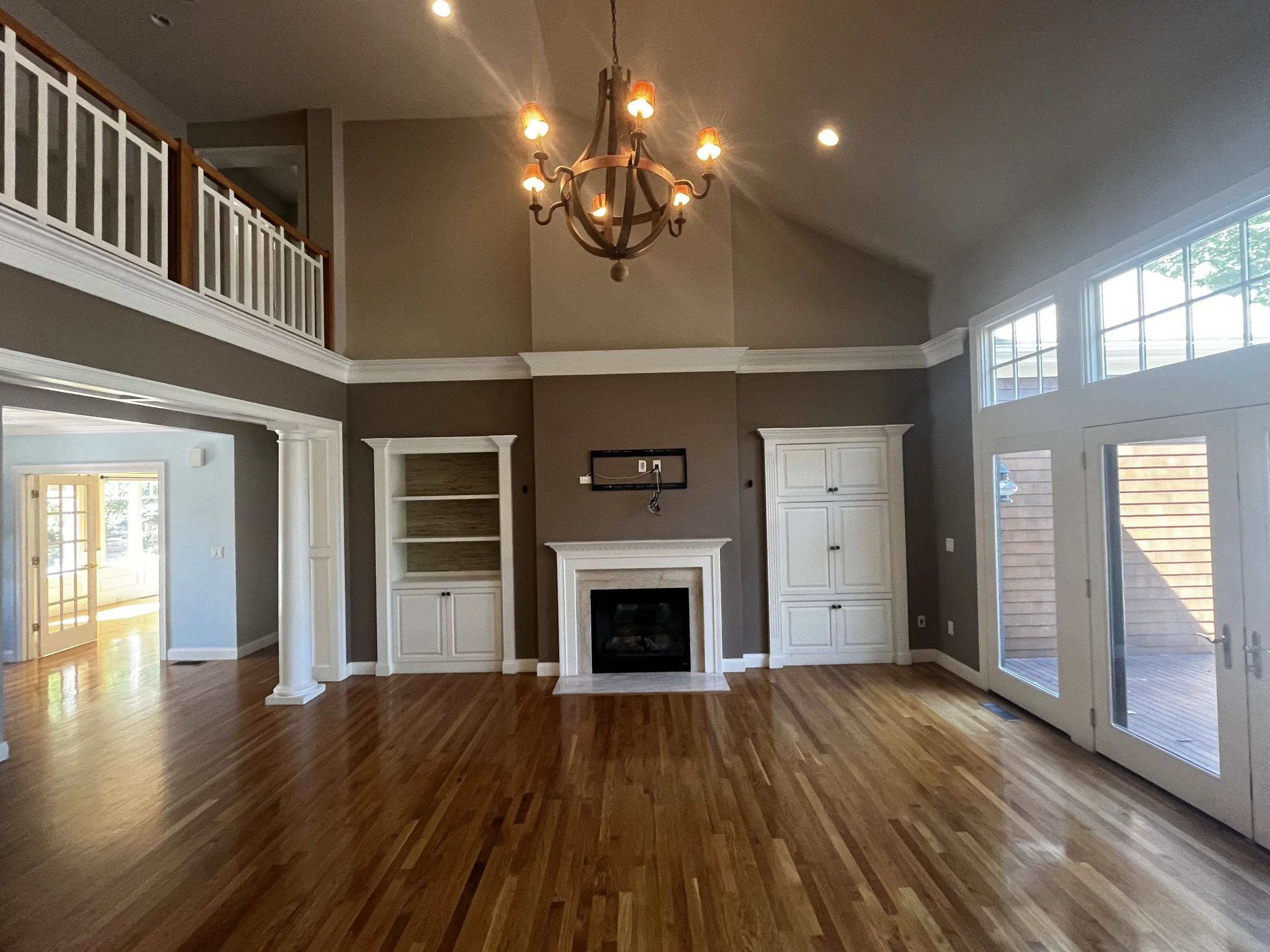 Complete interior renovation transformed a dated BlackRock Country Club condo into a modern, open retreat. Walls were removed to connect living, dining, and kitchen for more light and flow. The kitchen gained custom cabinets, quartz counters, and built-in appliances. Bathrooms received classic fixtures, large tiles, and better storage. New warm, wide-plank hardwood replaced floors; trim was simplified. Layered lighting includes fixtures and recessed downlights. HVAC, plumbing, electrical, windows, and insulation were upgraded. A neutral palette with natural textures and a few accents creates a calm, refined country-club feel.